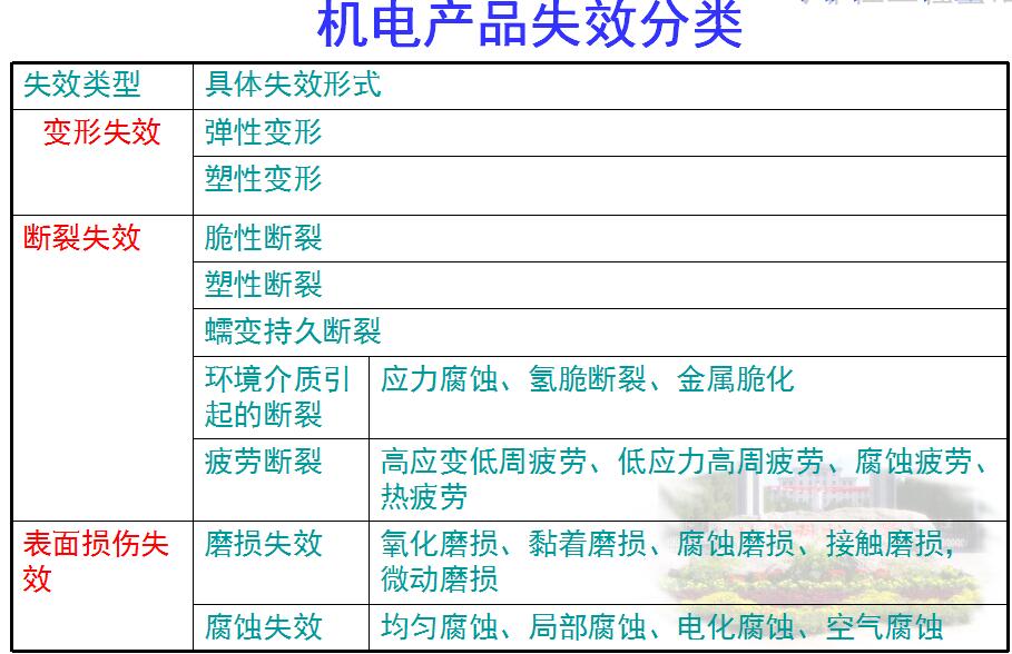 機(jī)電產(chǎn)品的機(jī)械零部件、微電子元件、儀器儀表以及各種金屬材料形成的零件都具有一定的功能,承擔(dān)一定的工作任務(wù),如承受載荷、傳遞能量、完成某種規(guī)定的動作等。當(dāng)這些零件失去了它應(yīng)有的功能時,則稱該零件失效。