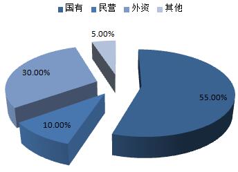 在全國檢測市場中,國有檢測機構(gòu)利用傳統(tǒng)壟斷優(yōu)勢占據(jù)了55%以上的市場份額;外資檢測機構(gòu)利用其成熟的市場運作經(jīng)驗及在出口貿(mào)易檢測業(yè)務中的天然優(yōu)勢占據(jù)了市場30%以上的市場份額;民營檢測機構(gòu)起步晚,資本實力小,經(jīng)過幾年的快速發(fā)展,市場份額接近10%。