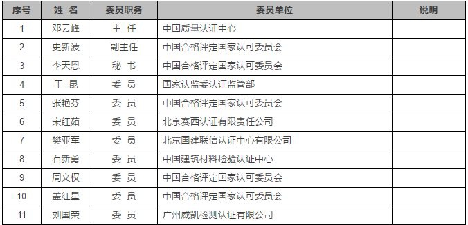 一、產(chǎn)品認證專業(yè)委員會委員組成及委員名單