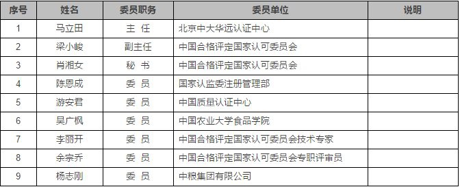 五、食品安全管理體系認證專業(yè)委員會組成及委員名單