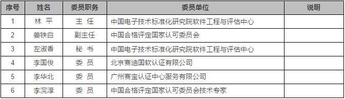 六、軟件過程及能力成熟度評估專業(yè)委員會組成及委員名單