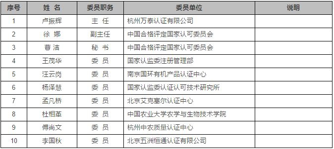 七、農(nóng)產(chǎn)品認證專業(yè)委員會組成及委員名單