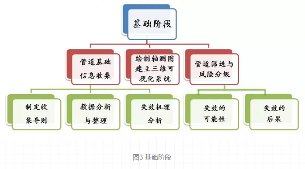 通過工程實踐,將埋地管道管理分為以下四個階段:基礎(chǔ)階段、檢測階段、修復階段以及緩解階段。