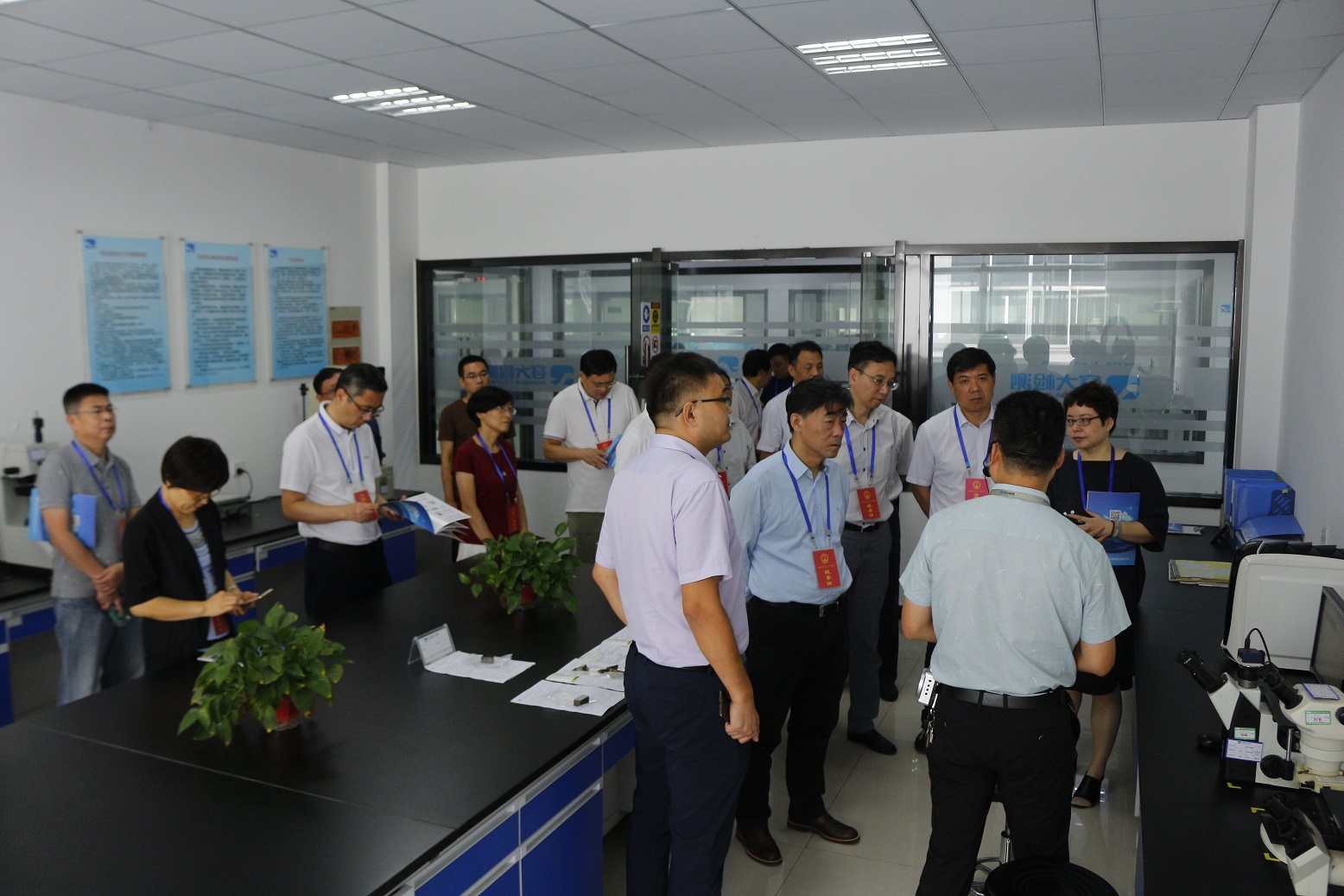 視察組近距離查看了金相實(shí)驗(yàn)室、化分實(shí)驗(yàn)室以及硫化氫實(shí)驗(yàn)室等科室,深入了解了檢測(cè)的過(guò)程并對(duì)容大取得的成績(jī)給予充分的肯定。